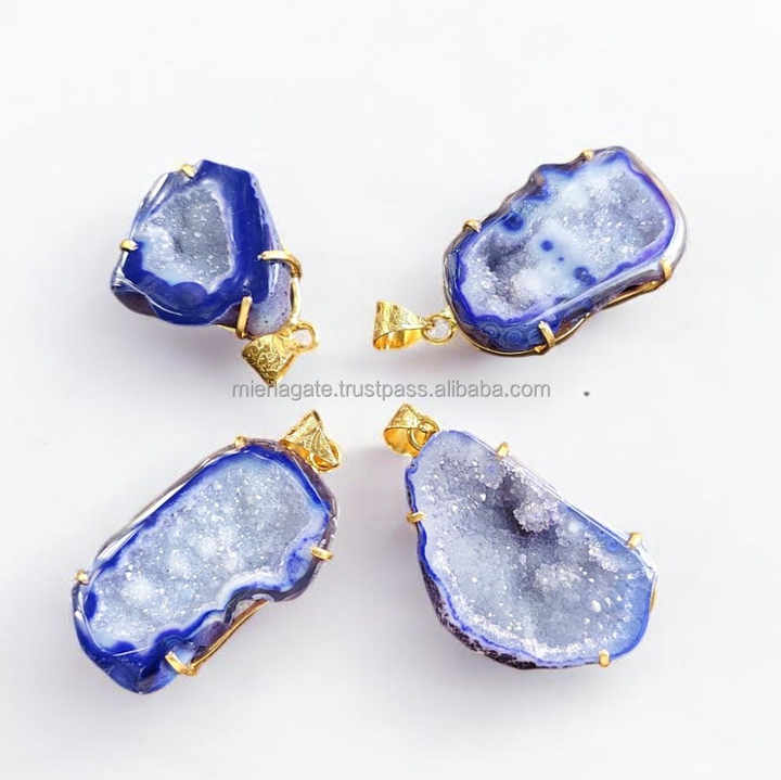 Best Selling Love Trending Colorful Carved Druzy Agate Pendant Top Trending Geode Crystal Necklace Natural Gemstone