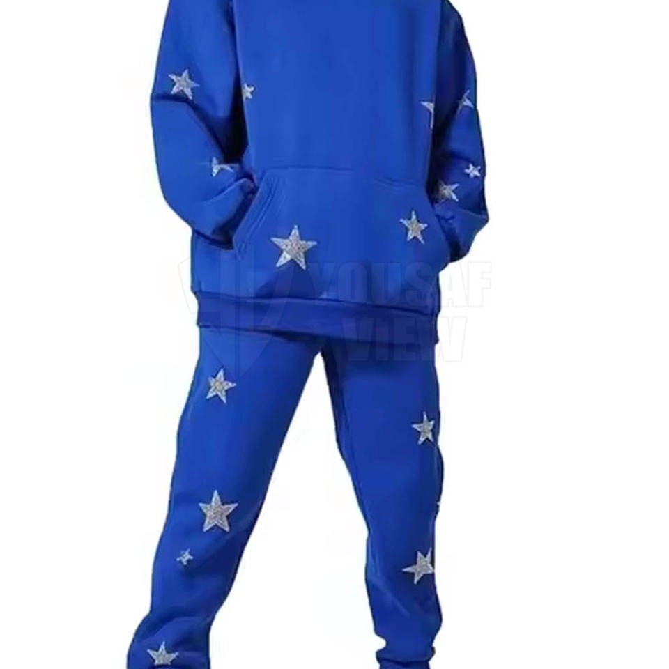 Meilleures ventes à bas prix Survêtement à capuche décontracté pour hommes, hiver solide imprimé avec strass, vente en gros personnalisée