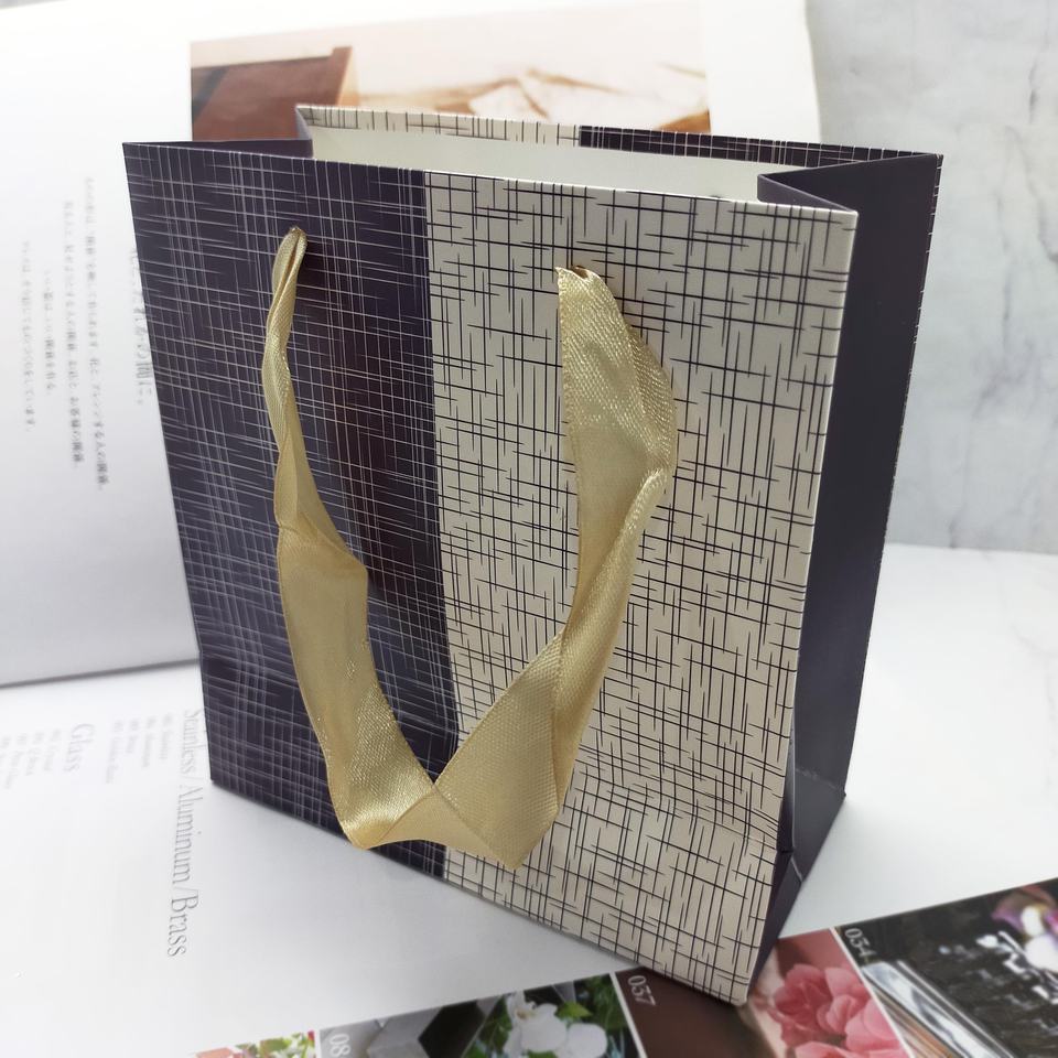 Meilleures ventes Sac cadeau de luxe en papier Sac à provisions à poignée en ruban doré imprimé blanc et violet