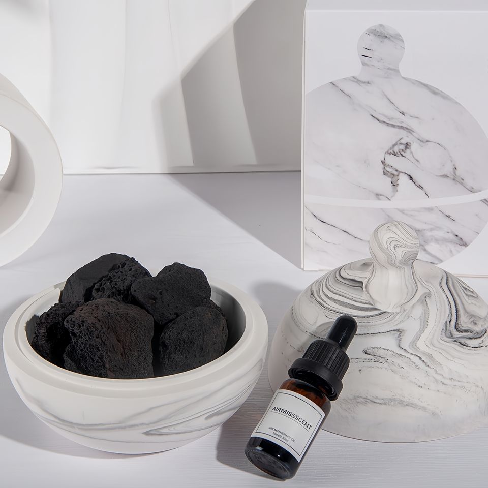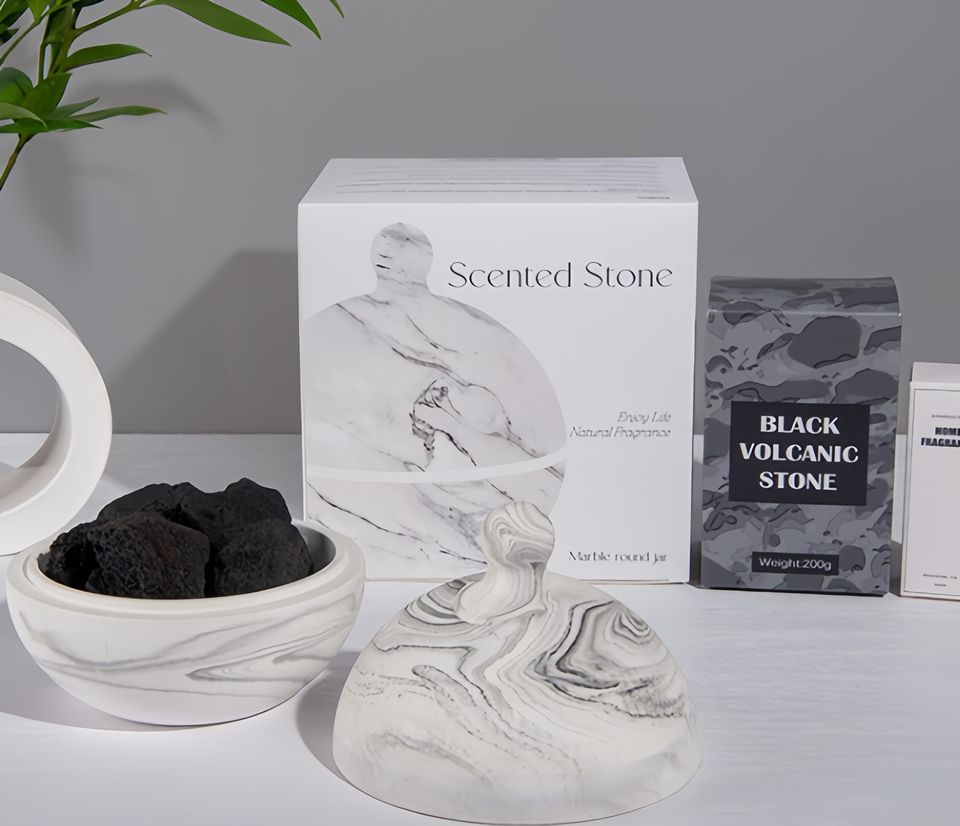 Diffuseur d'arômes marbrés best-seller ensembles de roseaux boîte-cadeau de sel de bain en pierre volcanique sans flamme ensemble de parfums d'intérieur et de parfums