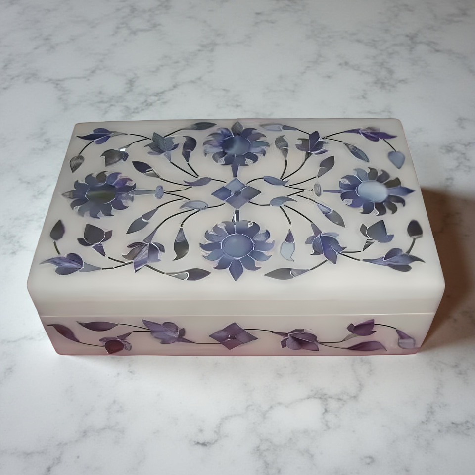 Boîte d'incrustation de marbre faite à la main artisanat pièces maîtresses décoratives de luxe élégant moderne artistique décor à la maison Design créatif Premium