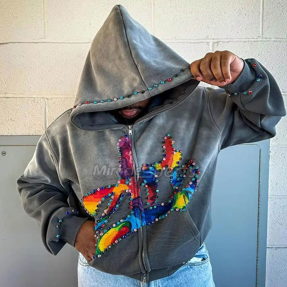 Nom du produit:Hommes Acid Wash Strass Hoodies