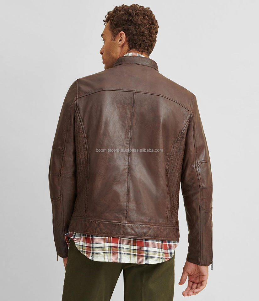 Best Selling Men's Cow Skin Genuine Jacket Quick Dry Winter Puffer Collar Classic Style Canvas Fabric Front Logo Position