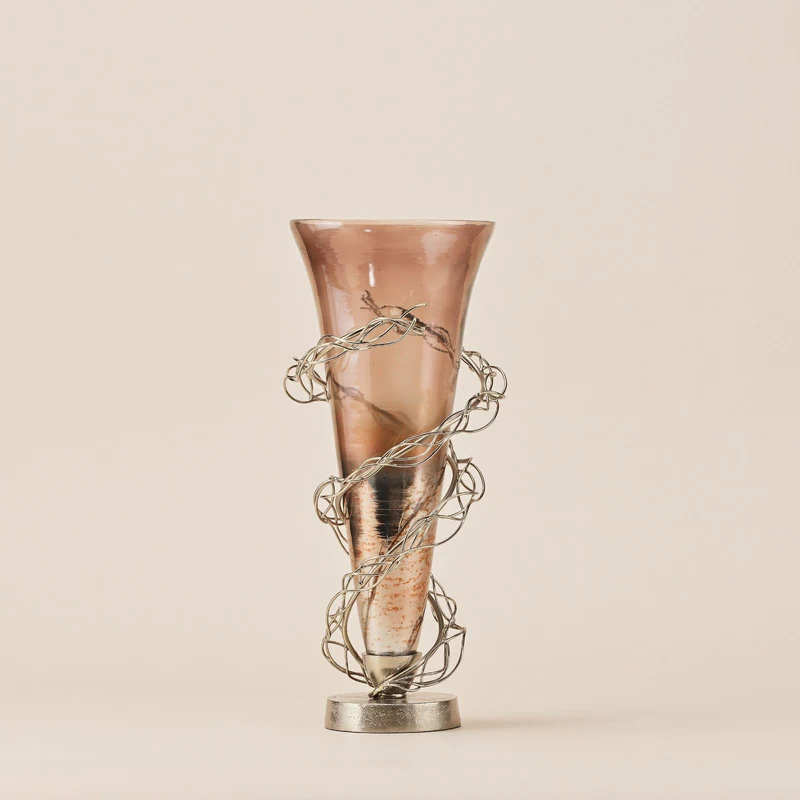 Vase à fleurs en métal et en verre, best-seller, pour table de chevet de chambre à coucher, créant une ambiance sophistiquée avec un attrait contemporain