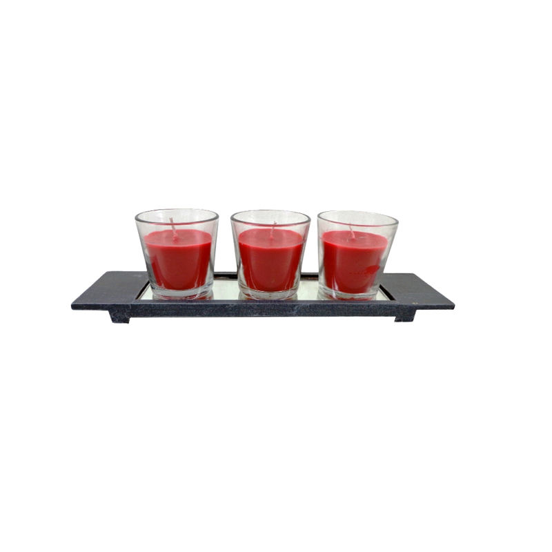 Best Selling Metal Tray With 3 Votive Gray Wash Candle Jar for Garden Decoration Handmade Customized in Bulk