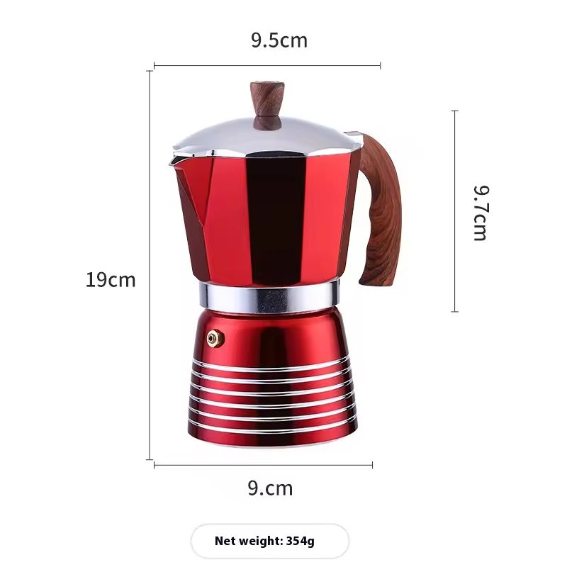 Meilleure vente moderne de style italien Moka Pot Machine à café ensemble Portable extérieur en alliage d'aluminium couleur-pulvérisé grain de bois métal