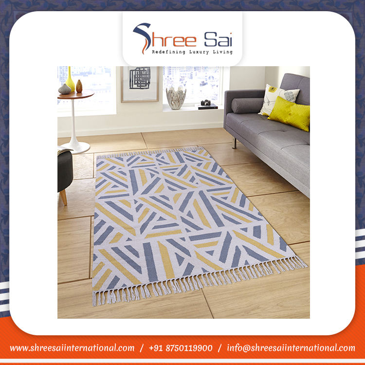 Best Selling Modern Striped Carpet Handmade Embroidered Cotton Rugs from Indian Manufacturer Beautiful Design