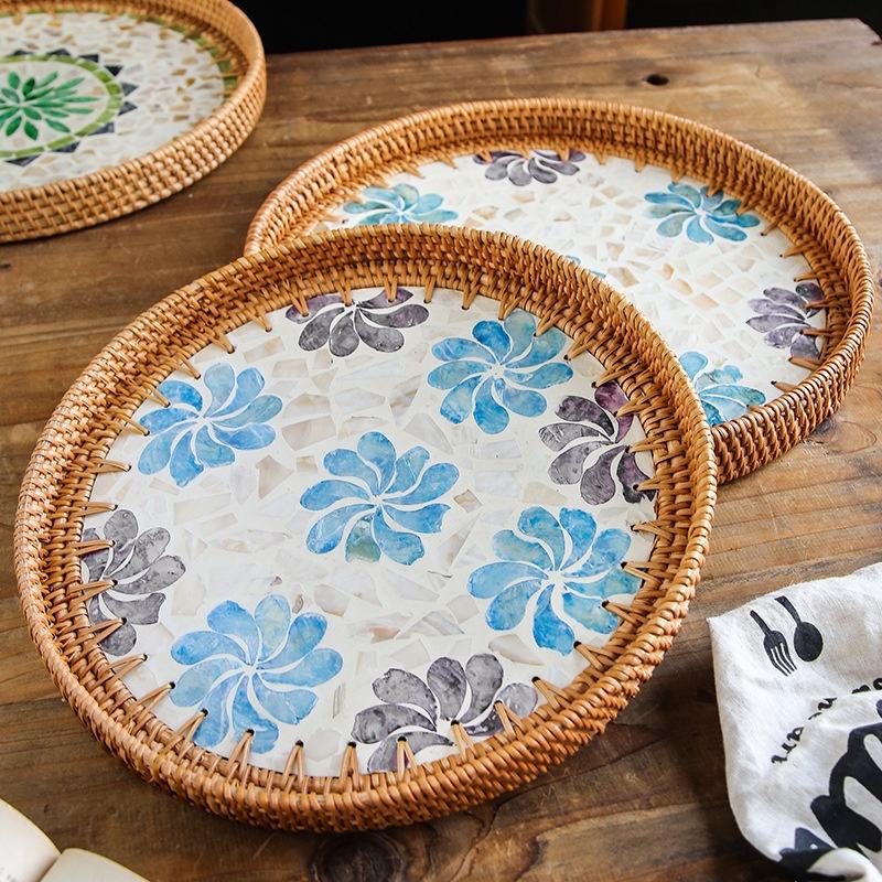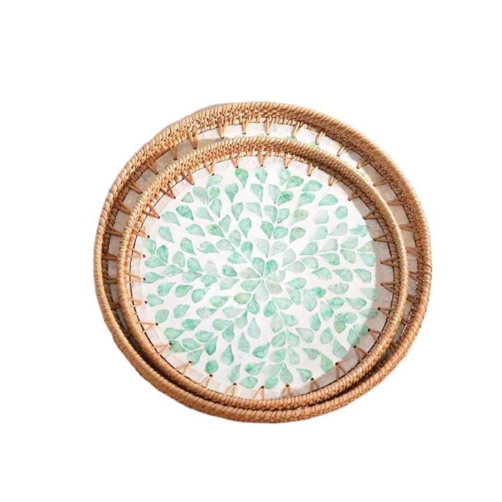 Plateau de service en rotin nacre le plus vendu, haute qualité, pas cher, plateau en rotin mosaïque 2022 fabriqué au Vietnam