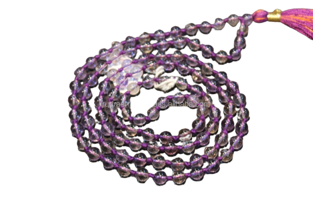 Meilleure vente d'amétrine naturelle 108 perles rondes Chakra Yoga Mala collier pierre de guérison cristal fabrication en inde