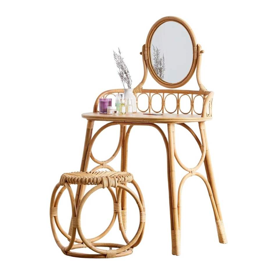 Ensemble de coiffeuse en rotin naturel le plus vendu, vente en gros en grande quantité