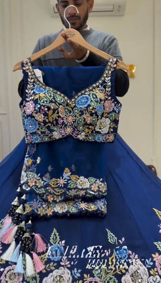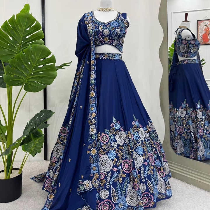 Meilleure vente Nevy Blue Designer indien traditionnel Chinon soie broderie Lehenga Choli Dupatta pour la tenue de mariage de fête d'été