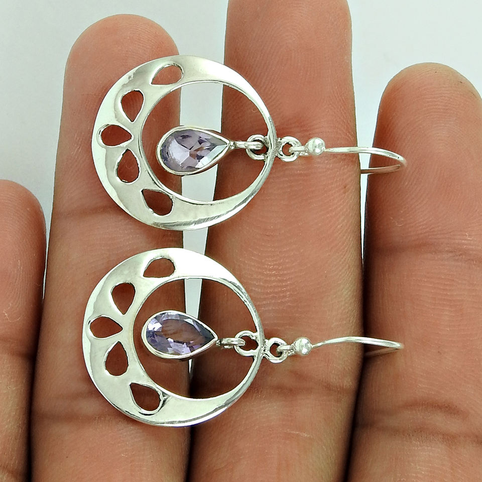 Meilleures ventes Nouveau design Boucles d'oreilles classiques en argent sterling 925 avec améthyste violette naturelle pour elle Bijoux faits à la main