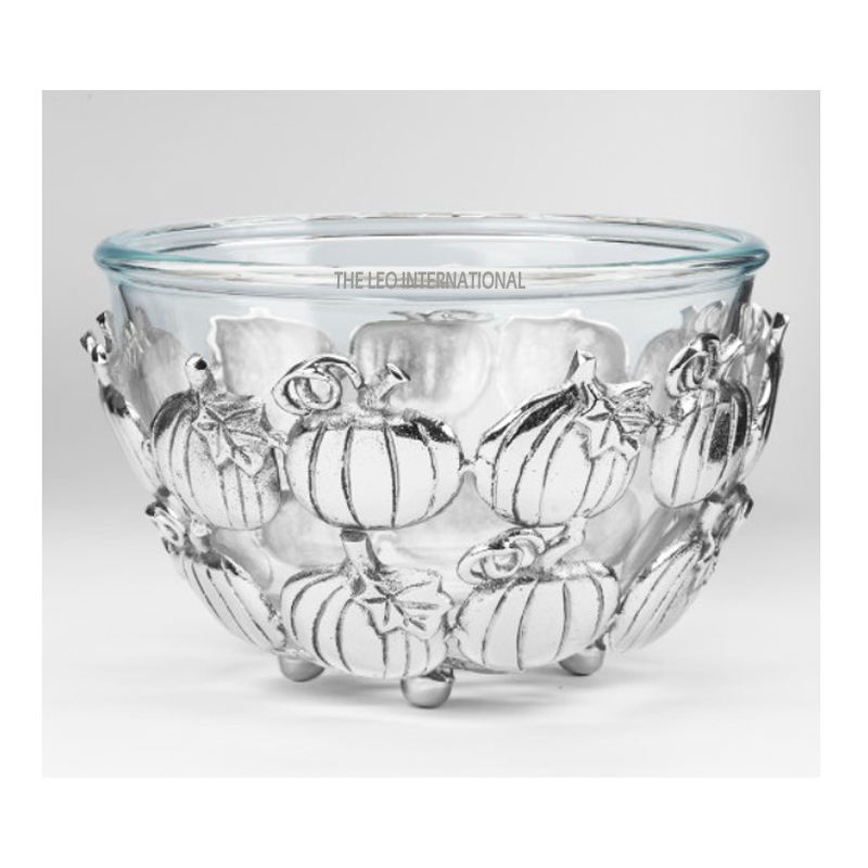 Meilleures ventes, nouveau look, beau bol rond en verre transparent en métal avec base design, bol sans métal en aluminium