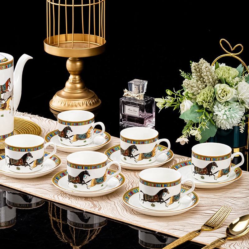Best Selling Nordic Luxury 15-Piece Porcelain Coffee & Tea Set Drinkware Gift Box
