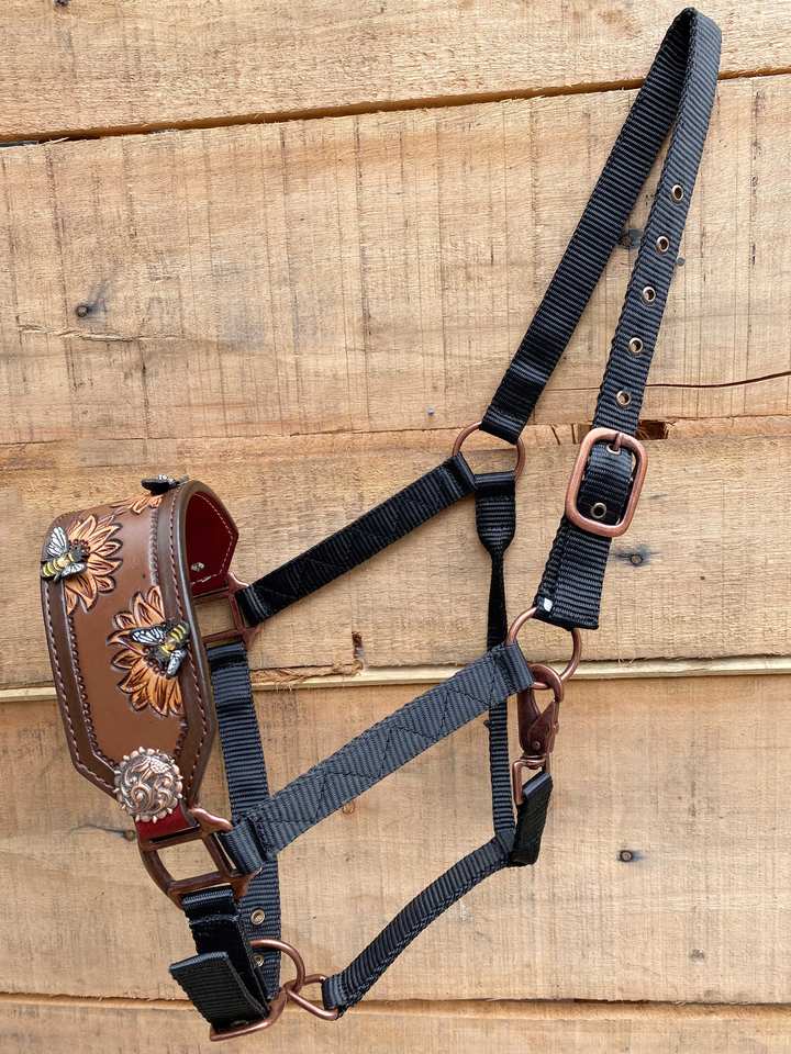Cheval Bronc Halter Tournesol Sculpture Avec 3D abeilles sur Bronc HalterNom du produit