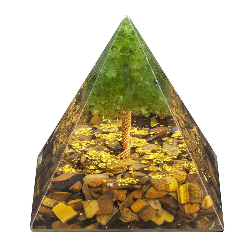 Pyramide Arbre de Vie en Orgonite la plus vendue avec cristal Œil de Tigre pour la protection contre les CEM, la guérison, le Reiki et la méditation par Aameena Agate