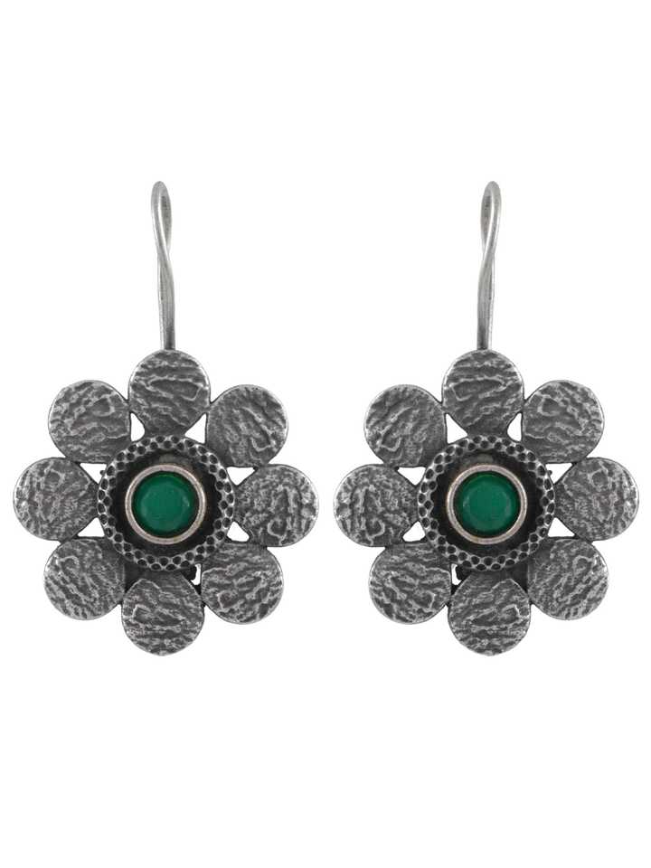 Boucles d'oreilles florales en argent oxydé