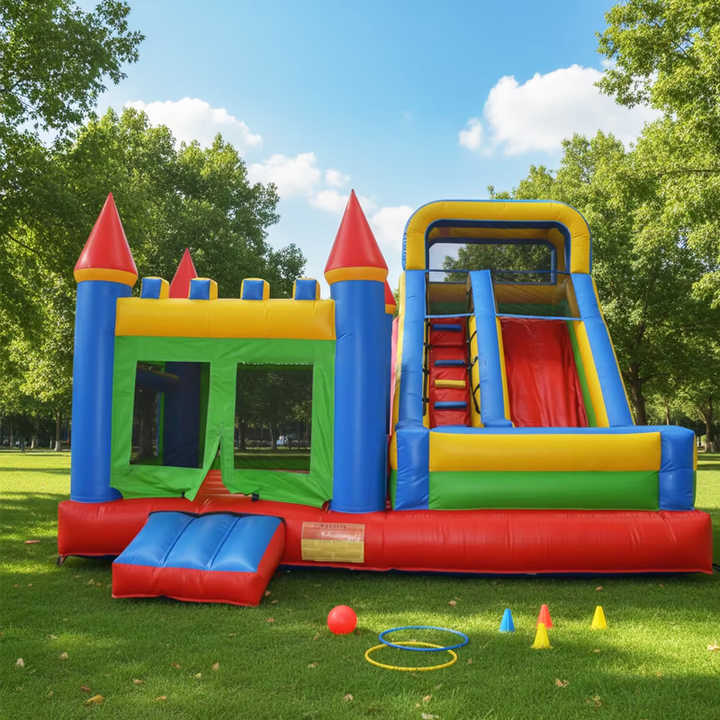 Nom du produit:Château gonflable rouge et bleu classique avec toboggan