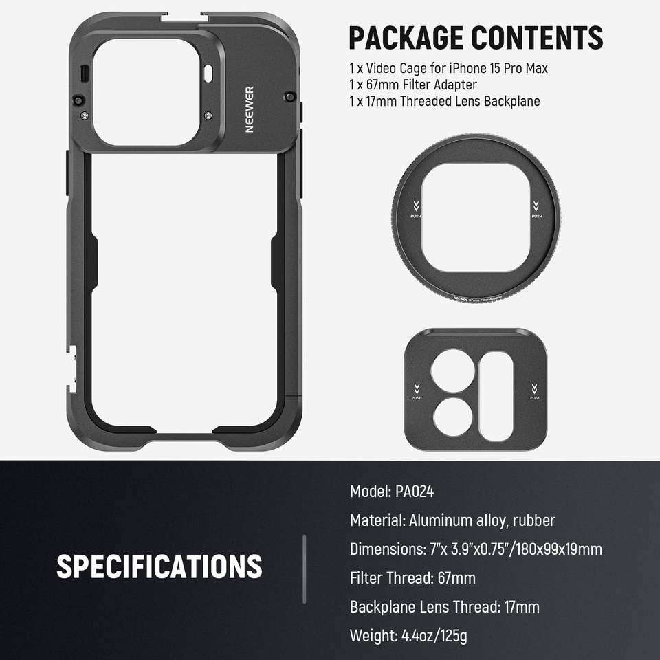 Kit de cage vidéo pour téléphone portable le plus vendu, avec poignée, boîtier en aluminium, cage vidéo Neewer 15 Pro avec adaptateur de filtre 67 mm à fixation rapide