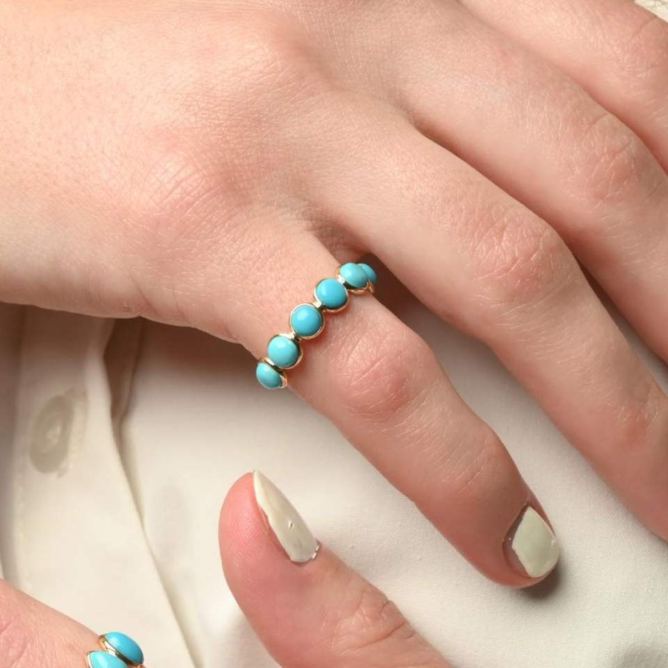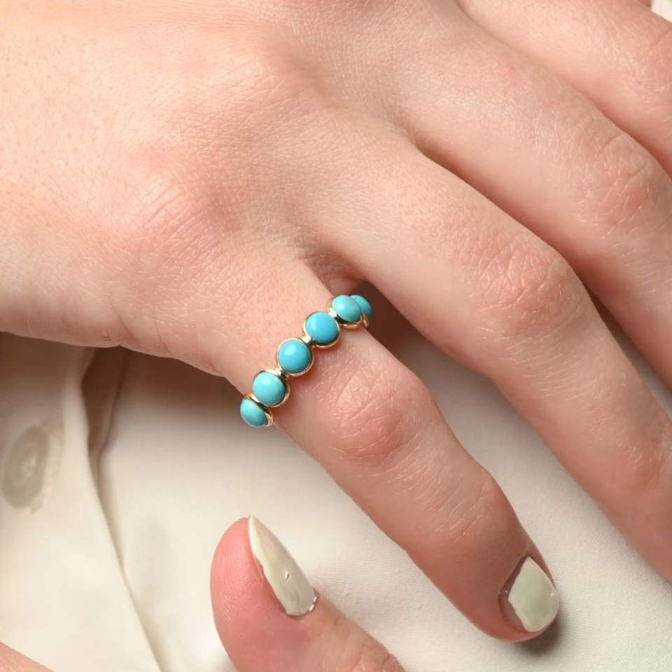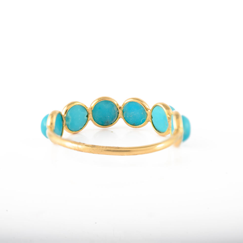Produit le plus vendu fait à la main 100% naturel turquoise forme ronde pierre demi-éternité bague en or jaune massif 18 carats bijoux