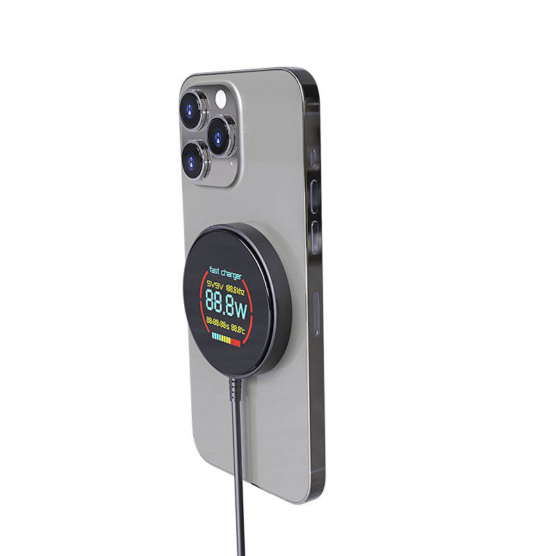 Produits les plus vendus Chargeur sans fil magnétique 10W en cuivre pur avec grand écran couleur C50 pour téléphones (affichage de la puissance et de la température)