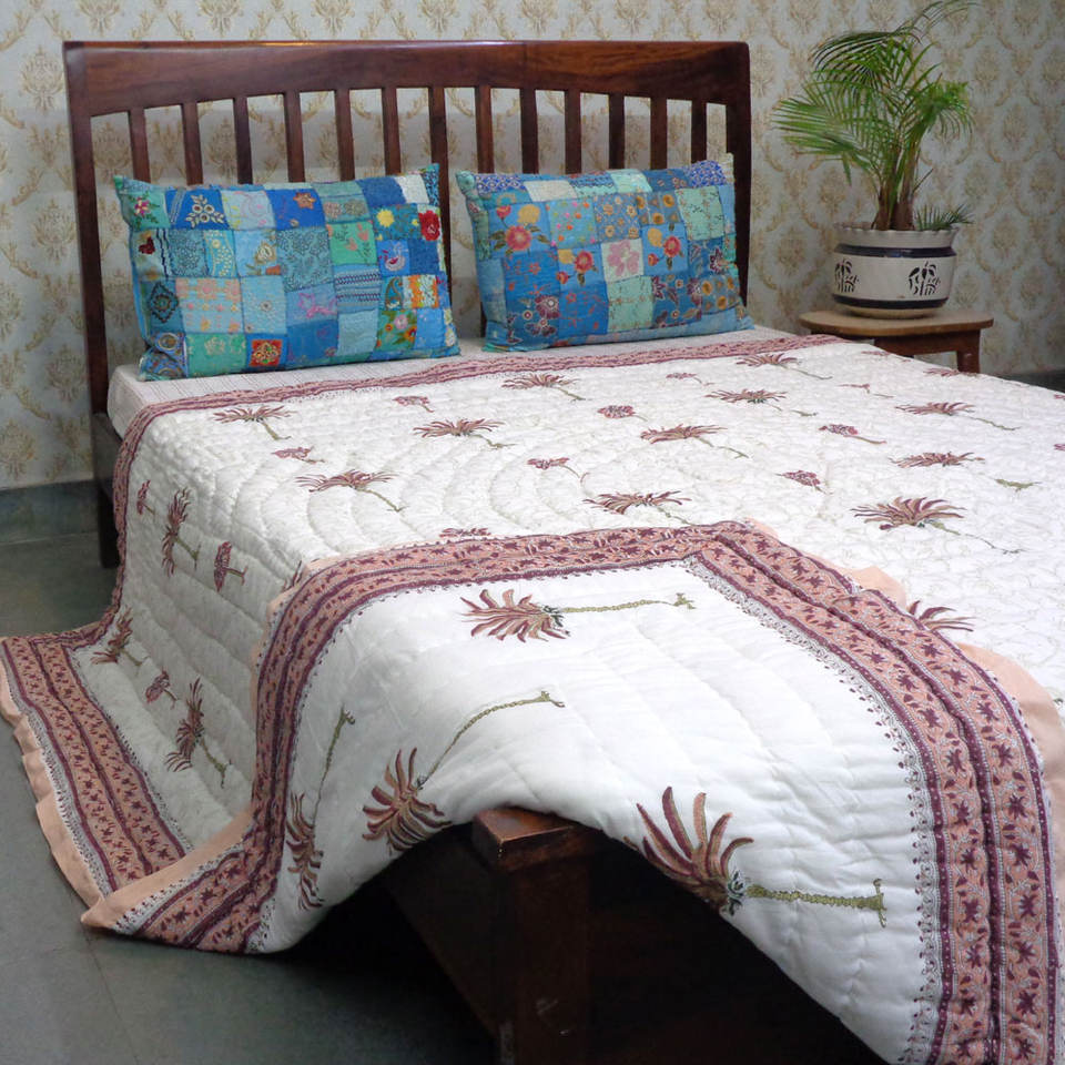 Queen Size Hand Block Printed Organic Cotton Quilt 100% Cotton Filling High Quality Best Selling with Factory Outlets on Sale