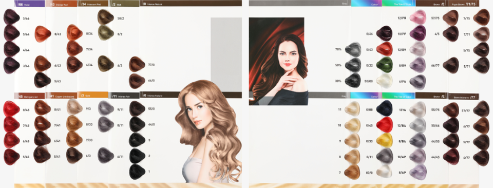 Meilleures ventes, professionnel, OEM, 84 couleurs, nuancier de teinture capillaire, nuancier de couleur de cheveux