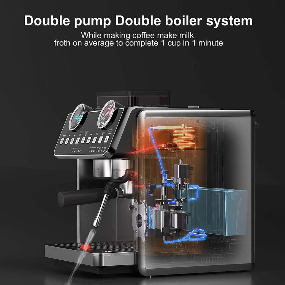 Double système de pompe:Système de café 20Bar + système de chauffage et de vapeur 5Bar