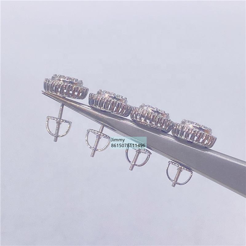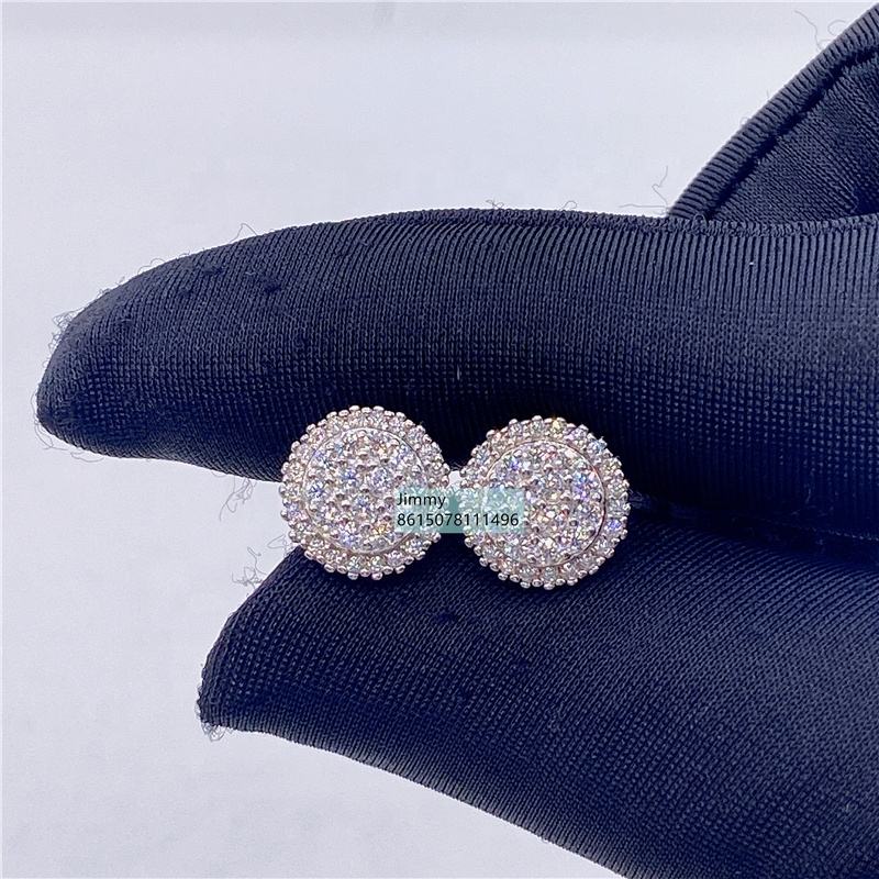 Meilleure vente Rappé Stock prix de gros argent 925 glacé bijoux Vvs Moissanite diamant forme ronde hommes boucles d'oreilles
