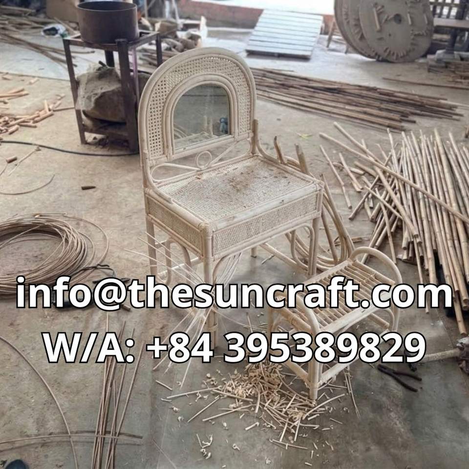 Coiffeuse en rotin la plus vendue avec miroir et chaise – Vente en gros, OEM, ODM, taille personnalisable, prix compétitifs