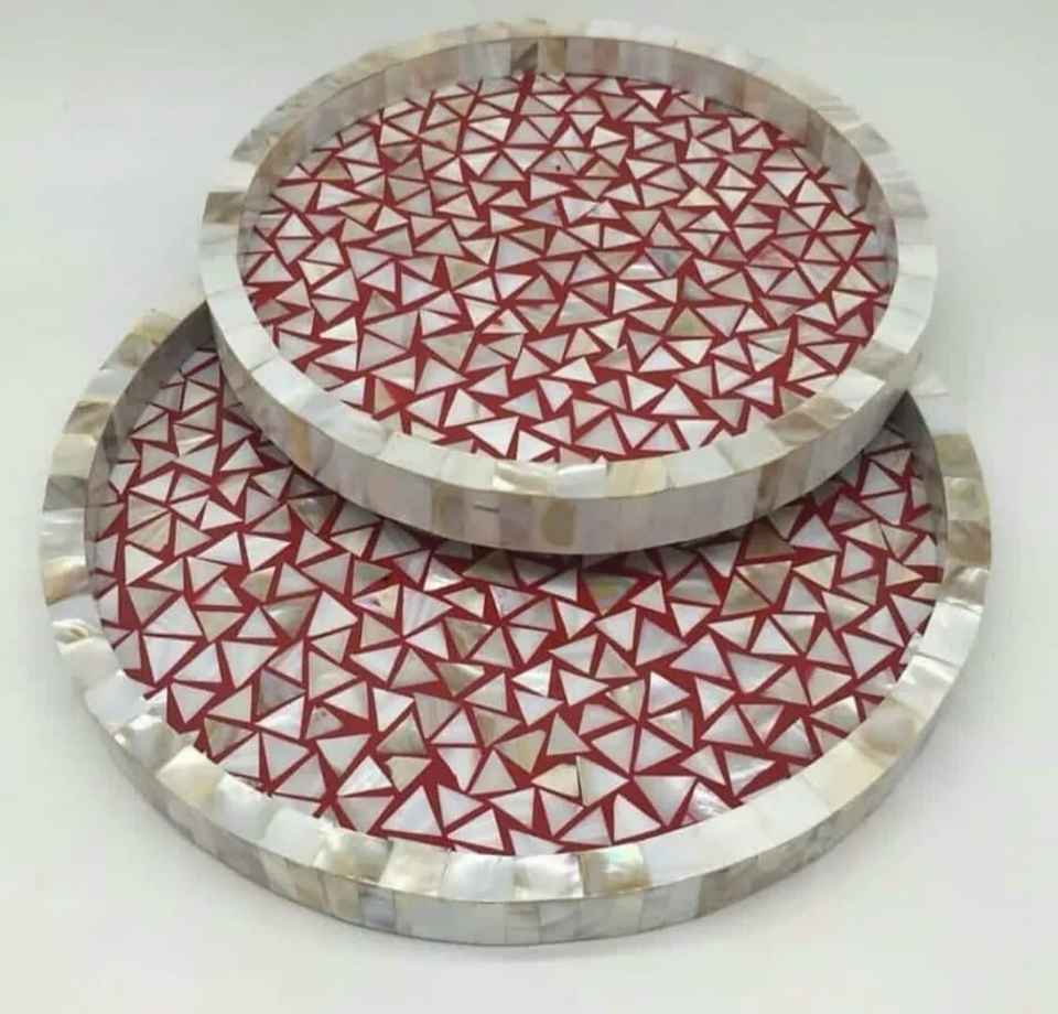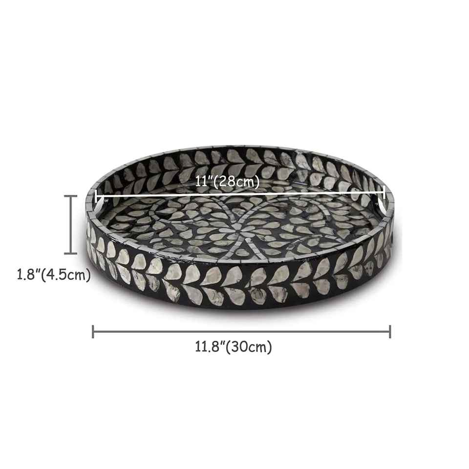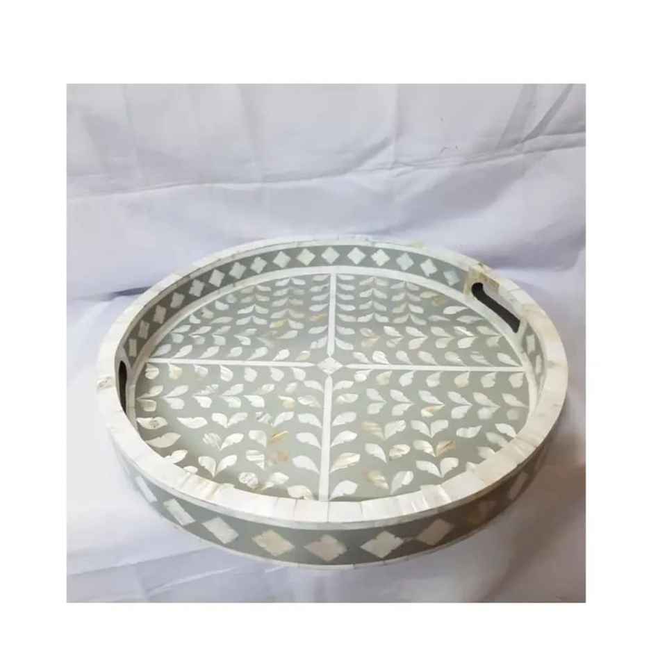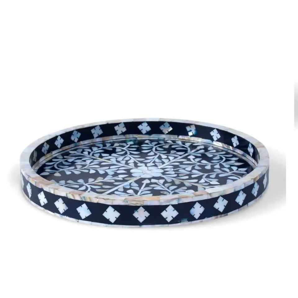 Plateaux de service et de rangement en résine et nacre, finition naturelle, best-sellers pour le Ramadan et l'Aïd, plateaux ronds tendance pour la table