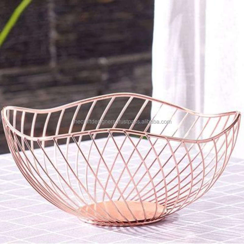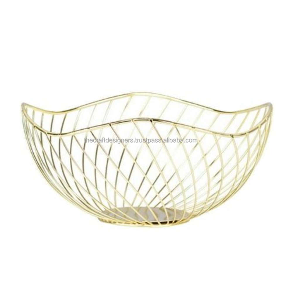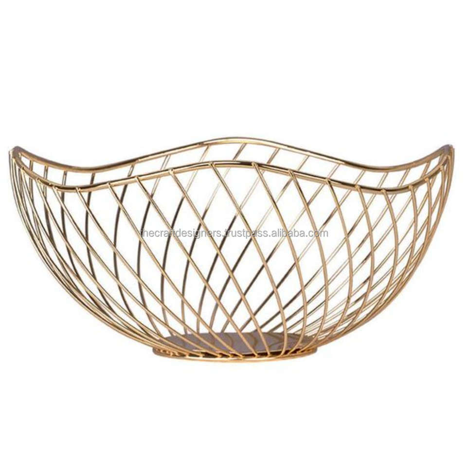 Meilleure vente Panier en fil métallique réutilisable de qualité finition or gros ustensiles de cuisine stockage fruits bol fer métal décoration de la maison