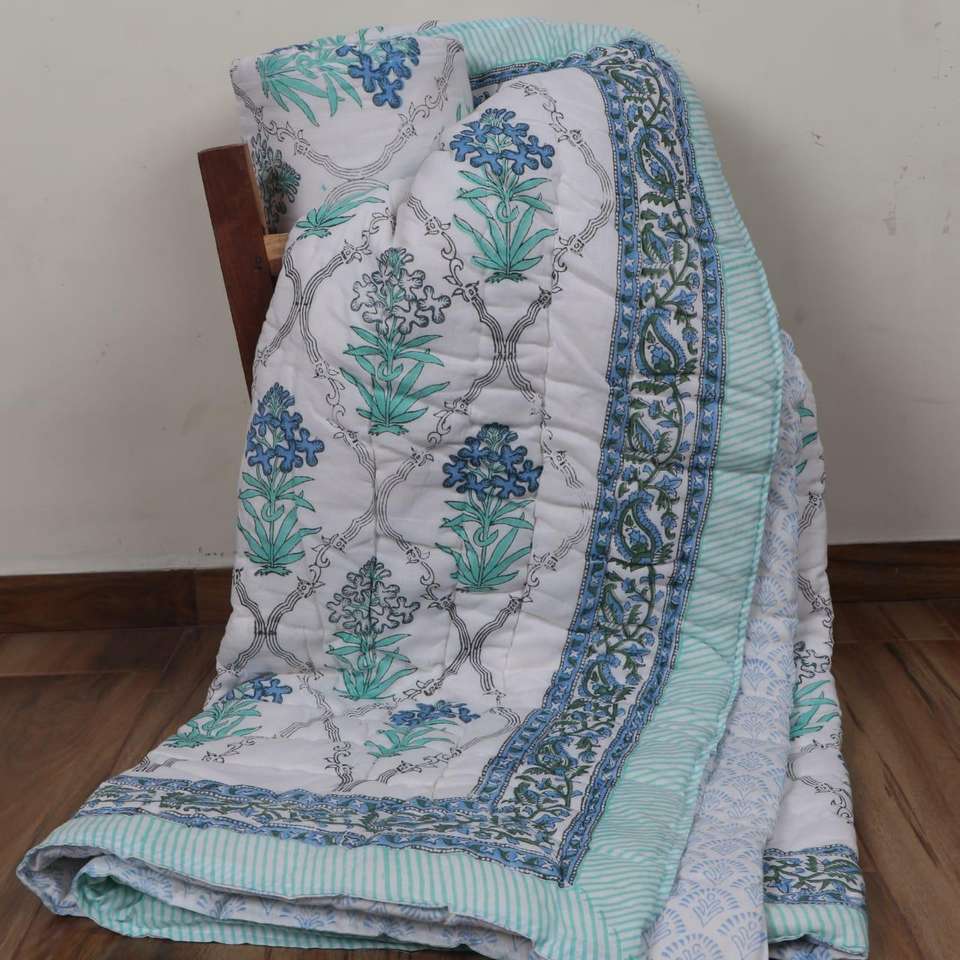 Jaipuri Rajai/Block Printed Cotton Quilt/Kantha Quilt