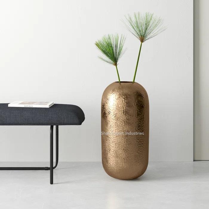 Meilleure vente de vases à fleurs martelés en métal de couleur dorée rustique fini or pour la maison salon porte-fleurs décoratif