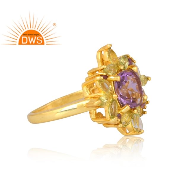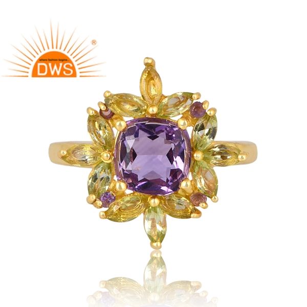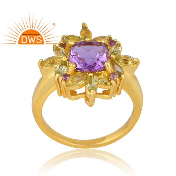 Meilleure vente Bague en argent plaqué or 18 carats avec améthyste naturelle et péridot pour femme Fabricant de bijoux design personnalisé