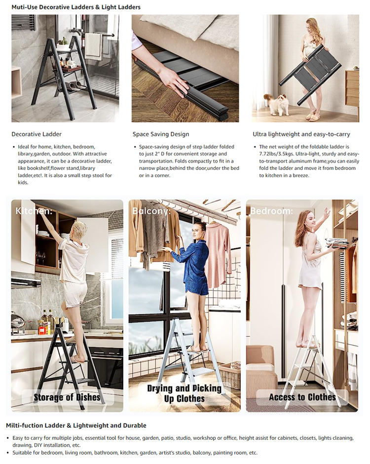 Meilleures ventes Petites marches échelle domestique 2/3/4 marches pour enfants adultes 330lb, rangement facile avec utilisation d'étagère polyvalente