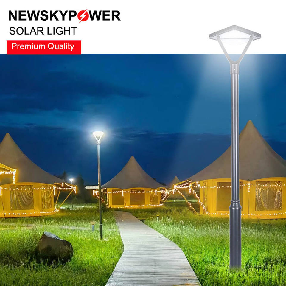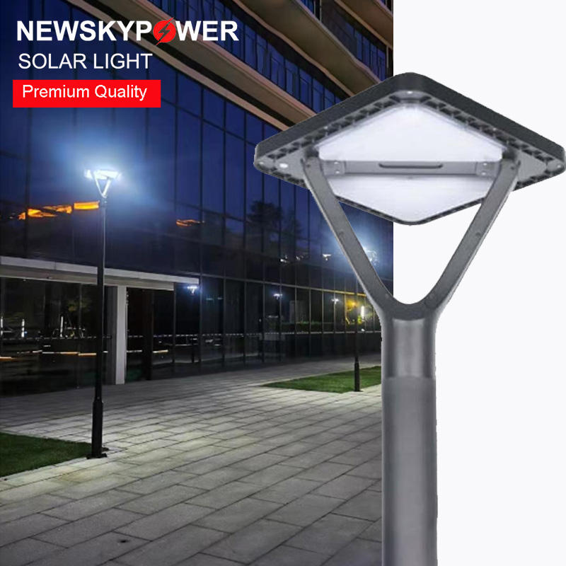 Lampe solaire de cour la plus vendue, design carré simple, hauteur d'installation de 2 à 4 mètres, sans câblage, idéale pour les allées.