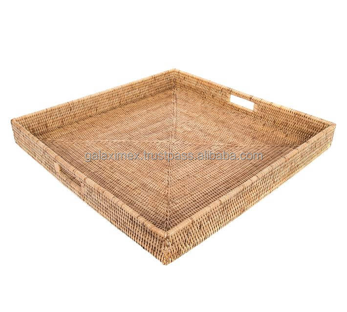 Meilleure vente carré pliable en rotin blanchi plateau de service stockage des aliments cuisine Organisation fruits ustensiles de cuisine salle de bain