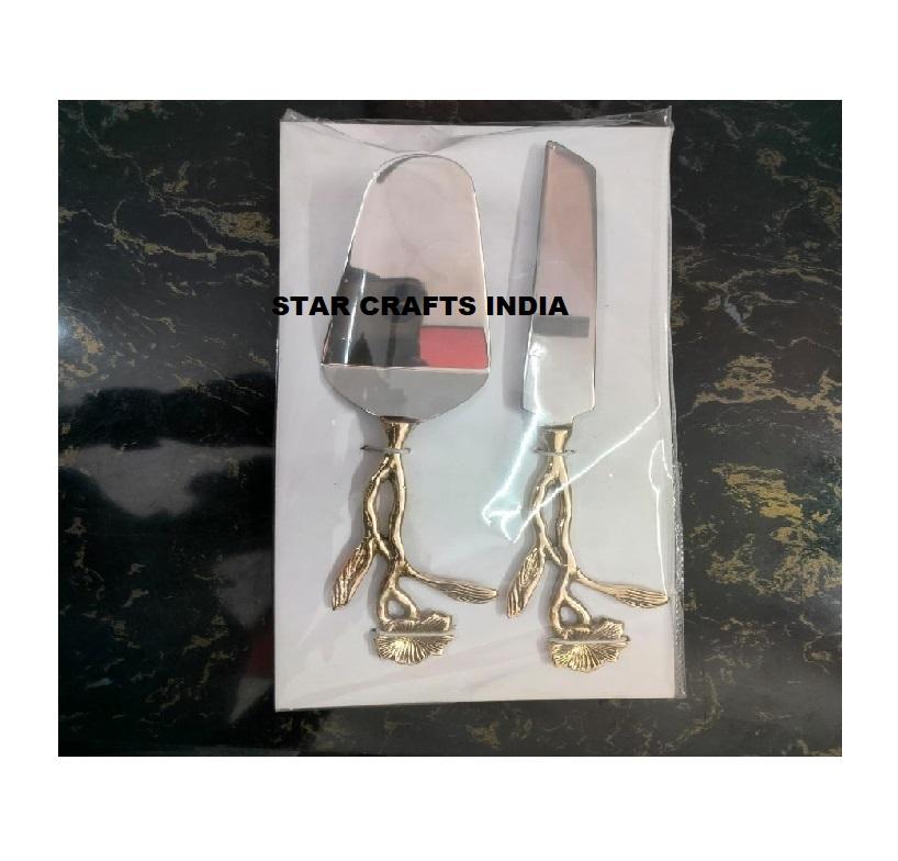 Best Selling Stainless Steel Metal Silver Plated Bulk Cutlery Sets With Gold Flower Twig Handle Cake server Cheese Tool