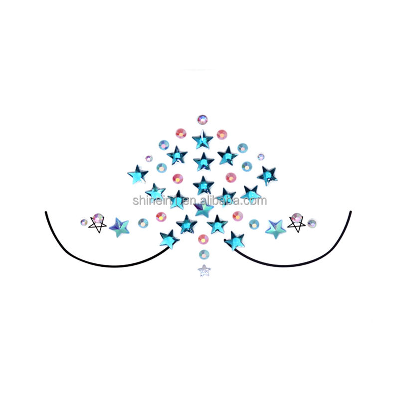 Autocollant de tatouage de poitrine en forme d'étoile le plus vendu, bijoux de corps pour femmes, gemme de poitrine en forme d'étoile pour la décoration