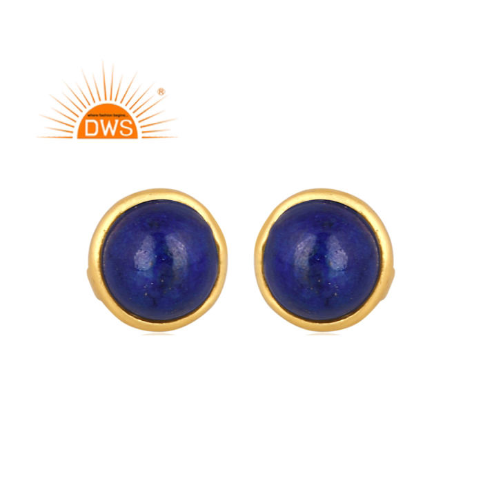 Meilleure vente de boucles d'oreilles en argent sterling plaqué or 18 carats avec pierres précieuses en lapis-lazuli naturel Demi fabricant de bijoux fins