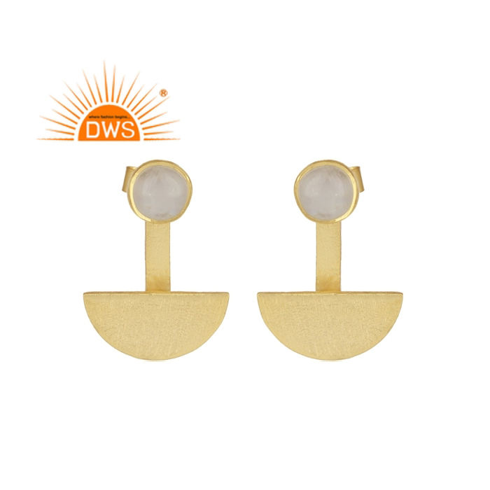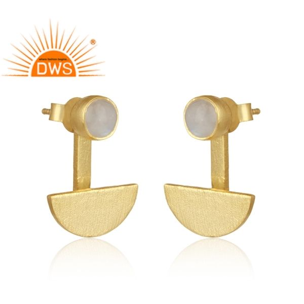 Meilleure vente argent sterling plaqué or naturel arc-en-ciel lune pierre précieuse croissant de lune conception boucle d'oreille fabricant de bijoux