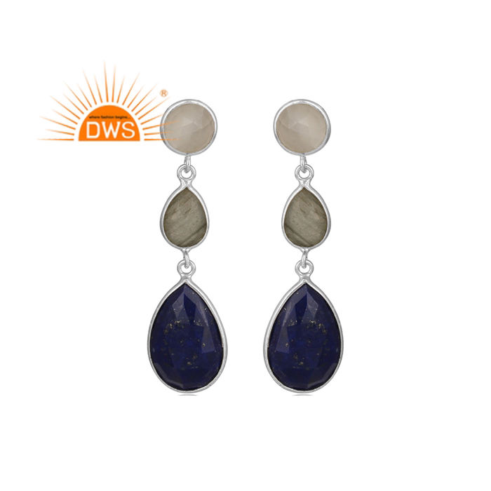 Meilleure vente de boucles d'oreilles en argent sterling avec pierres précieuses naturelles multiples fabricant de bijoux personnalisés