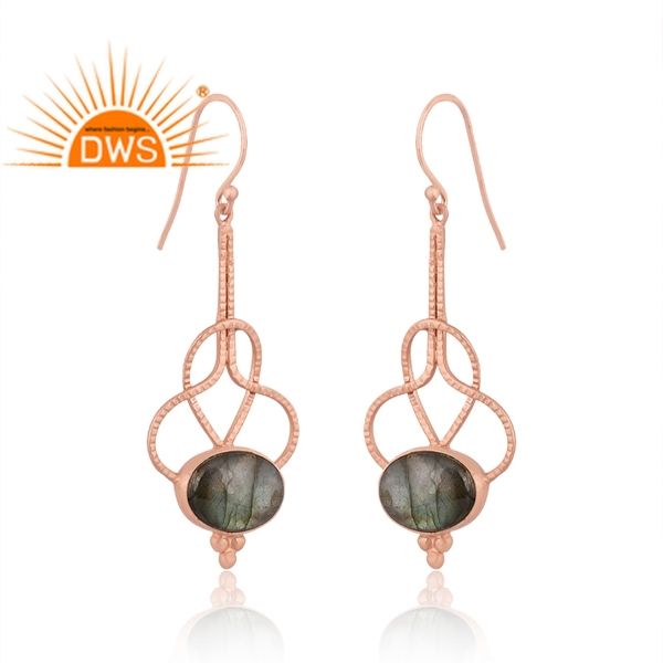 Meilleure vente Boucles d'oreilles en argent sterling plaqué or rose avec pierres précieuses en labradorite naturelle fabricant de bijoux personnalisés