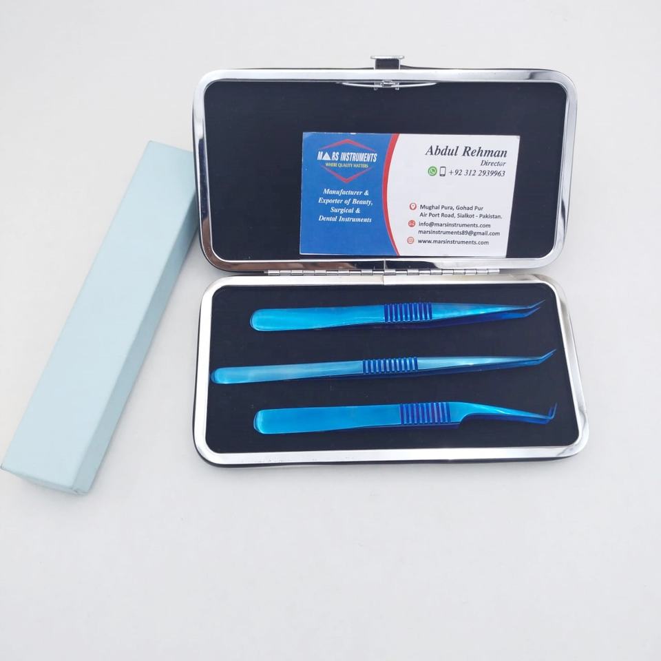 Pince à cils Dumont en acier inoxydable Plasma bleu avec étui magnétique