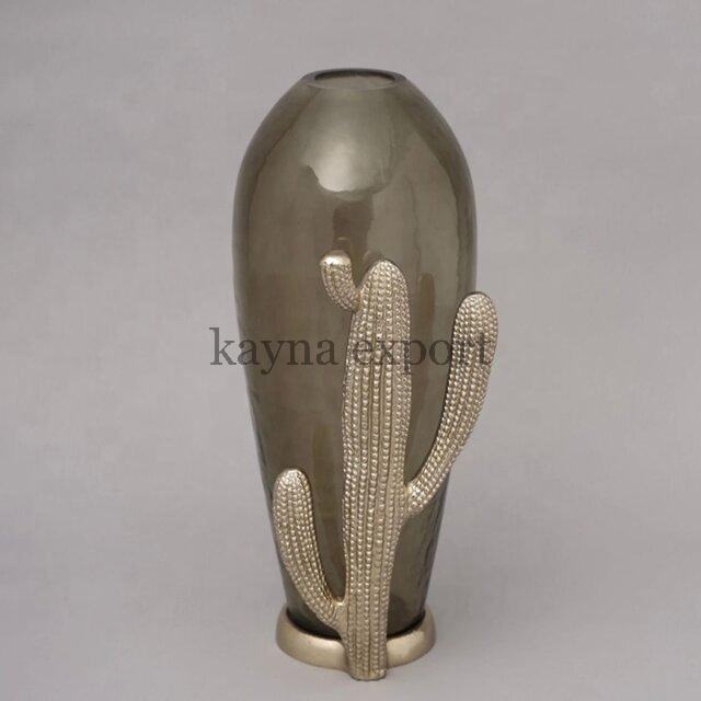 Meilleure vente Décoration de table Vase à fleurs en verre Artisanat noir Métal Branche Style Centre de table Décor Vase