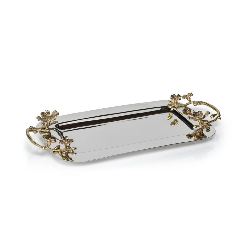 Meilleure vente plateau feuille d'or poignée nickelé argent chocolat assiette de service en aluminium plaque de chargement