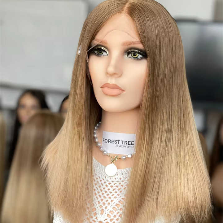 Meilleure vente de cheveux vierges raides pour la couleur juive casher perruque HD Lace Top avec noeud blond longue longueur