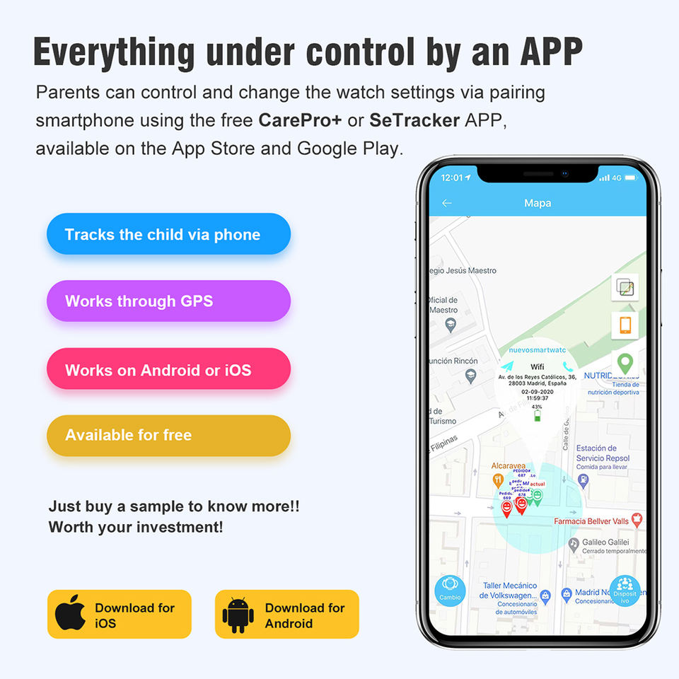 3 G, Wi-Fi, Gps Navigation, MP3 Playback, Touch Screen, Dual SIM Card, FM Radio, Auto Focus, Qwerty Keyboard, Build in Flash, 4 G, App Control, IP67 waterproof, IP68 waterproof, femininity, Kids, with earphone, SDK available