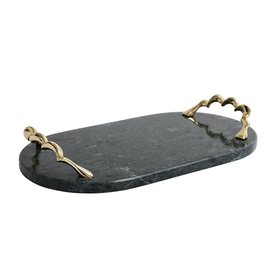 Plateau de service élégant en marbre blanc, best-seller, avec poignées en laiton ornées de feuilles, écologique, pour mariage et décoration intérieure